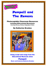 Literacy, music, geography and history worksheets using extracts from the Educational Musicals show Pompeii